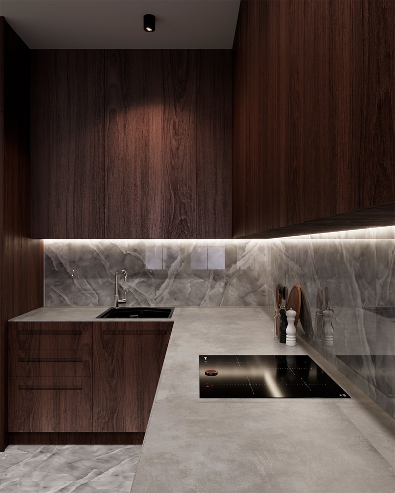 Холодный серый оттенок керамогранита является идеальным фоном для разнообразных стилей интерьера — от минимализма до хай-тека. Светлые прожилки, словно лучи солнца, пробивающиеся сквозь облака, придают материалу особую глубину и динамичность. Такой контраст создает эффект легкости и воздушности, наполняя помещение уютом и гармонией.