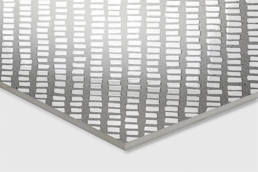 Керамогранит BIERZO BISAZZA WHITE GLUE представляет собой элегантное и практичное решение для современных интерьеров. Светло-серый матовый фон дополнен объёмным белоснежным рисунком, имитирующим мозаичную выкладку, что придает пространству утонченность и стиль.