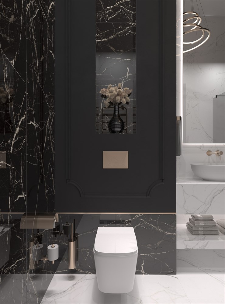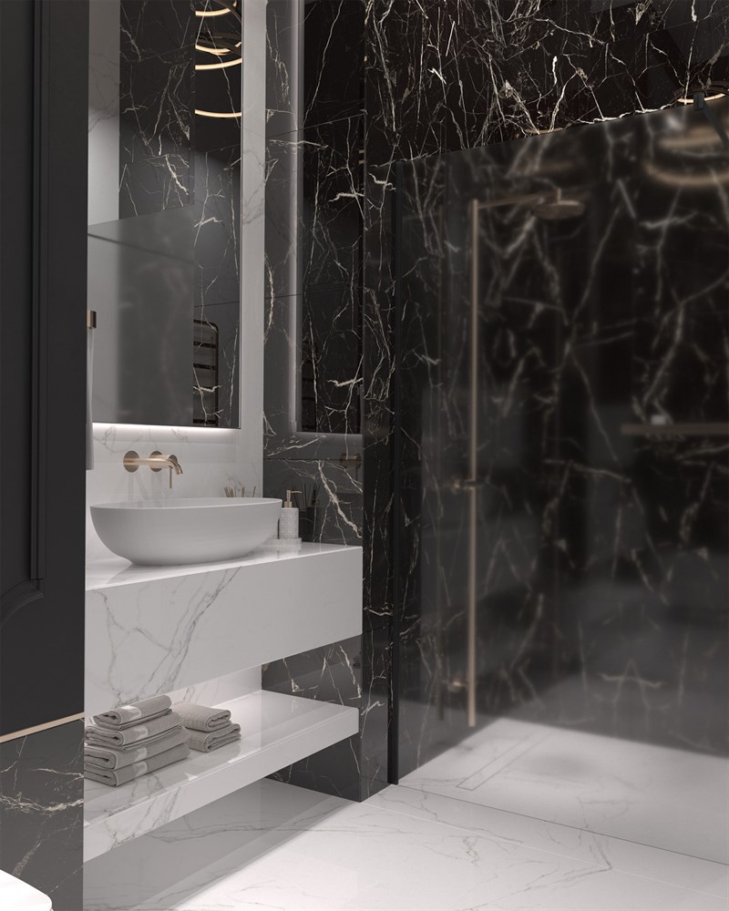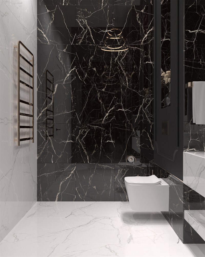Чёрный керамогранит BLACK SPINDER с имитацией мрамора завораживает своей элегантностью и утонченностью. История черного мрамора начинается в античные времена, когда его использовали для создания статуй и архитектурных шедевров. Этот камень символизировал роскошь и власть, обладая одновременно прочностью и красотой. С течением времени черный мрамор стал неотъемлемой частью элитного дизайна.