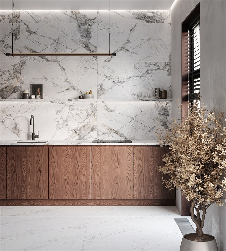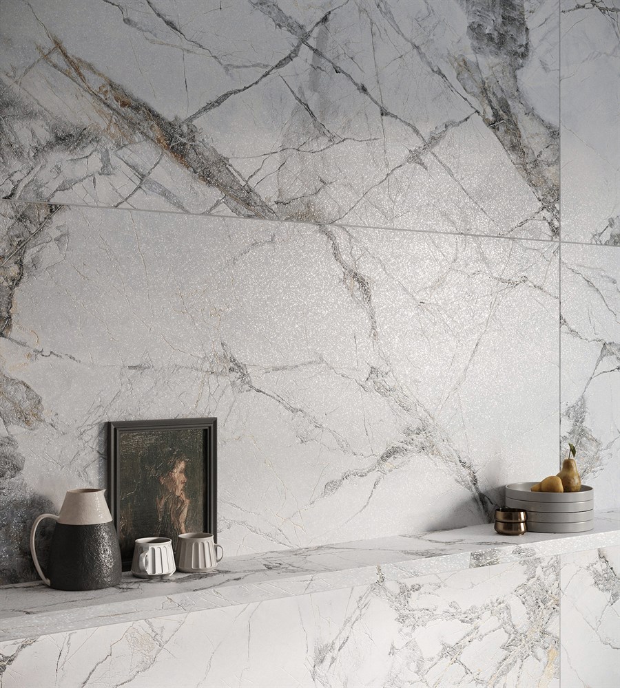 Технология лаппатирования создаёт лёгкий блеск на поверхности, а карвинг придает прожилкам уникальный рельеф. В помещениях с естественным освещением керамогранит переливается мягкими тонами, а в условиях искусственного света приобретает более яркие оттенки. Неповторимая текстура MALTA BIANCO LAPPATO имитирует природный камень, напоминая о спокойствии и гармонии. Этот керамогранит идеально подходит для различных помещений. В сочетании с правильным освещением он подчеркнет любые детали декора, создавая неповторимую атмосферу уюта и стиля.