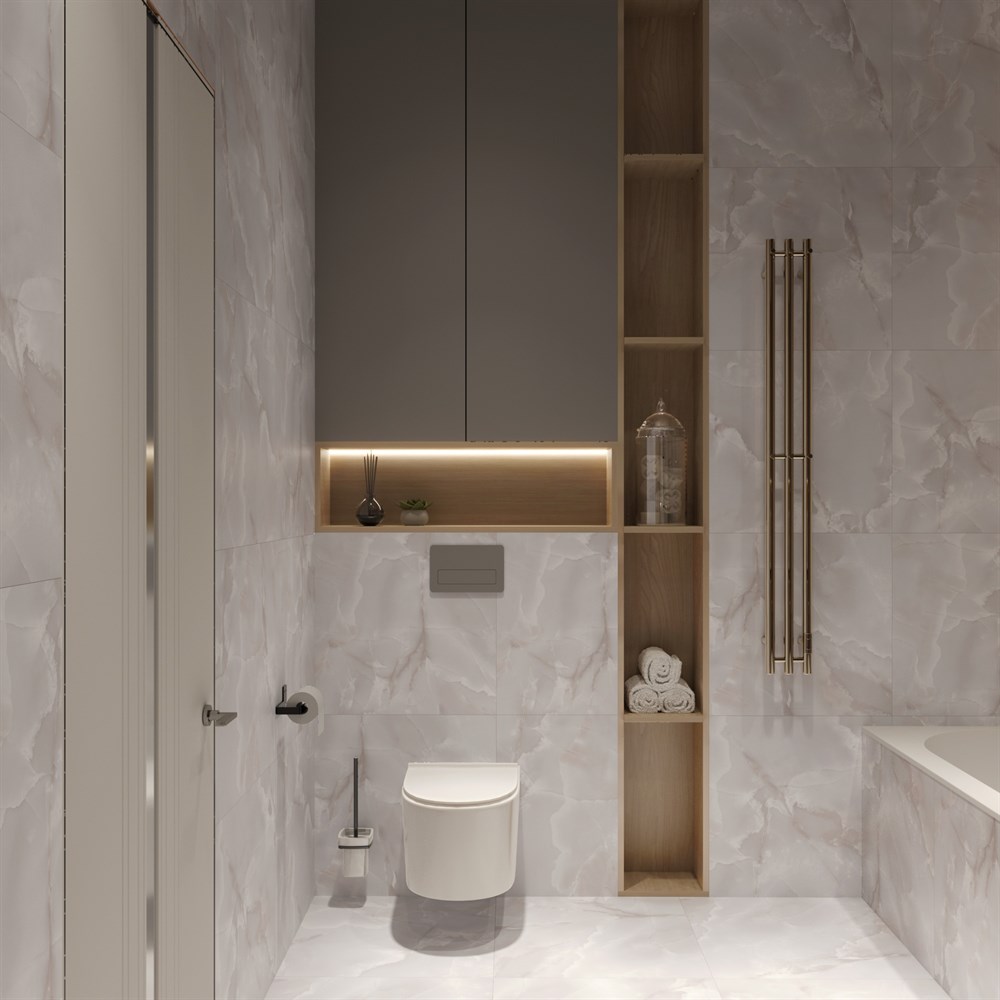 Керамогранит PRIMO ONYX GREY идеально сочетает в себе элегантность и функциональность, что делает его отличным выбором для создания стильного пространства. Его светлый оттенок добавляет в интерьер легкость и воздушность. Светлые прожилки, напоминающие оникс, добавляют уникальность, придавая плитке характер и стильный вид.
