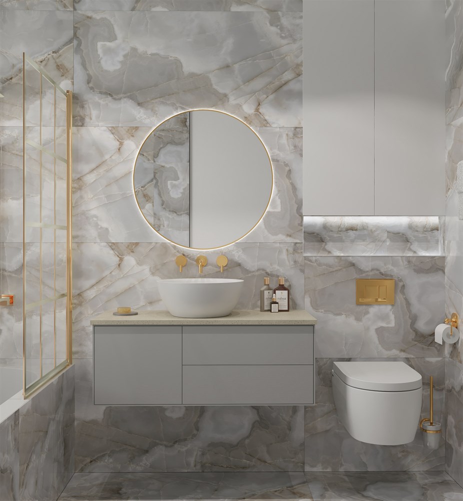 Керамогранит REX ONYX BLUE становится не просто элементом декора, а настоящим акцентом, который притягивает взгляды. Уникальный дизайн позволяет использовать его в различных интерьерах — от классического до современного стиля. В интерьере ванной комнаты или кухни, этот керамогранит подчеркнет изысканность и создаст атмосферу роскоши. При правильном освещении он будто заиграет новыми красками, акцентируя внимание на каждой детали.