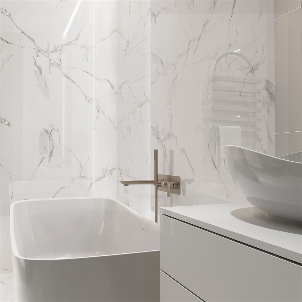 STATUARIO MIRES идеально подходит как для напольных, так и для стеновых покрытий. Устойчивость к износу и легкость в уходе делают ее практичным выбором для различных помещений.